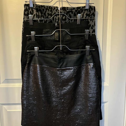 To korte skjørt i sort/hvitt mønster. Begge str S. Stig P skjørtet er ubrukt. Second Female skjørtet har volanger. 250 for Stig P skjørtet og 175 for Second Female. 400 for begge.
