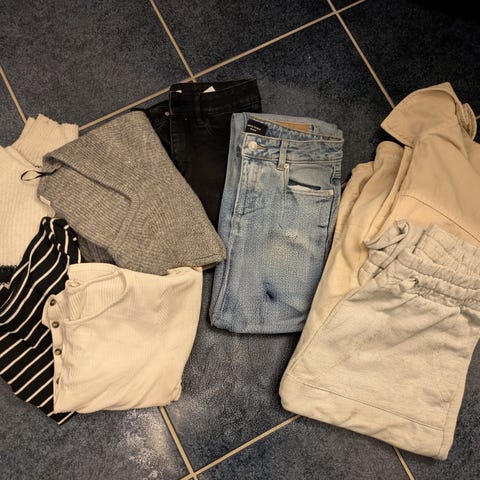 Disse klærne passer nok best ungdom/ung-voksen. Det er hovedsakelig str. S. og noe er i M. Liten medium, (i mine øyne).
