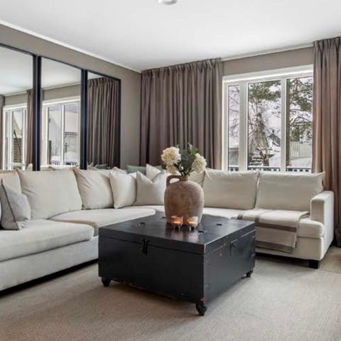 sofaputene på den største er blitt noe blekt bak sofaputen som har stått mot vindu, men dette synes ikke til vanlig. Ingen skader, noe bruksmerker som ikke er forstyrrende. Bør ses!