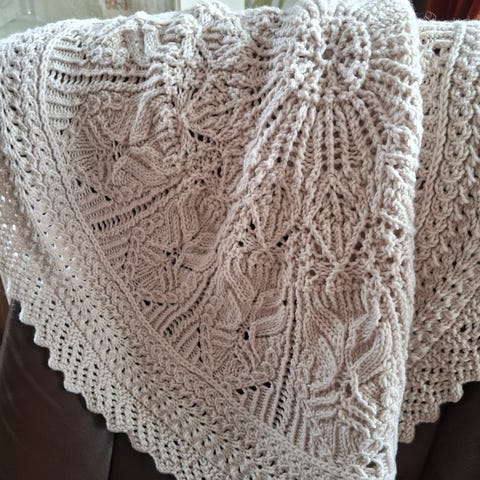 Strikket i kløfritt babymerino fra Drops. Str ca 100x100 cm. Har ferdige tepper i flere farger. Strikker også på bestilling dersom noen ønsker det i andre farger. Dette tar da ca 3 uker per teppe. Eventuell porto kommer i tillegg.