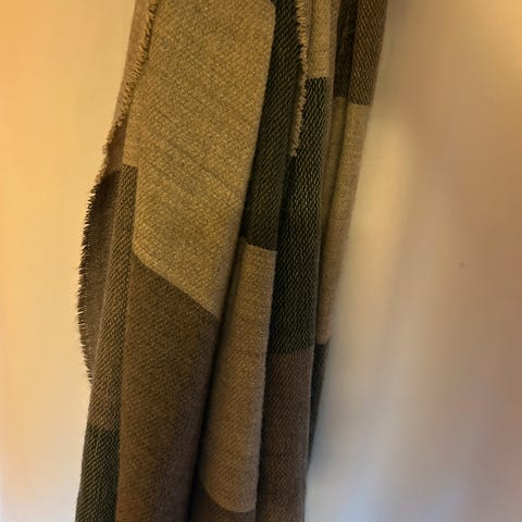 Vakker, myk og varm pashmina I ull. Fargen er grønn med rosa kanten. Den er 2 meter lang og 77cm bred. Som ny. Kan hentes eller sendes med fiks ferdig.