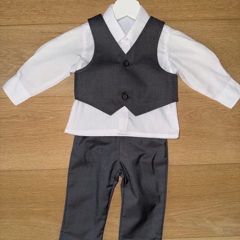 Superfin dress med en sort og en sølv vest. Sort sløyfe og sølv slips.