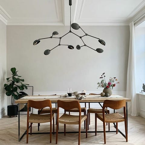 Pent brukt Drop Chandelier lysekrone fra 101 Copenhagen, designet av Kristian Sofus Hansen og Tommy Hyldahl i fargen oksidert.