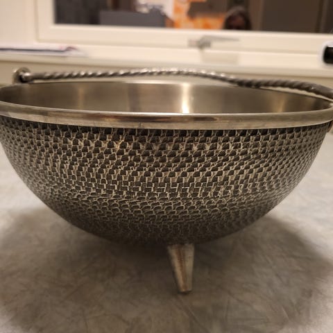 Skål i metall, mest sannsynlig sølvplett fra 50-tallet