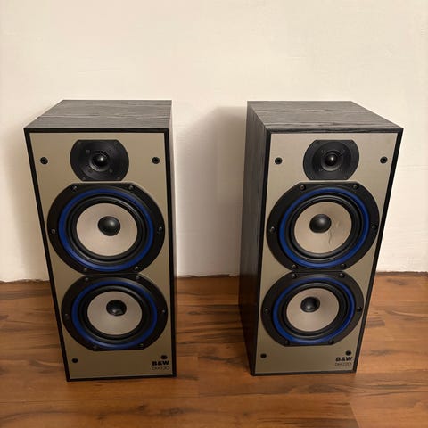 Produsert 1986-1989. Usikker på verdi, gi bud! Ein med peiling på desse meinte eg ikkje burde la dei gå for under 3000 kr, sjølv som rep.objekt! Diskanten på den eine høgtalararen treng ein fiks, er ikkje "heilt i slag". Vekta er i overkant av 10 kg per stykk.