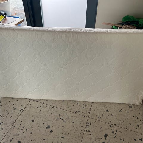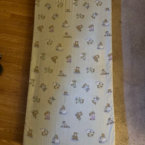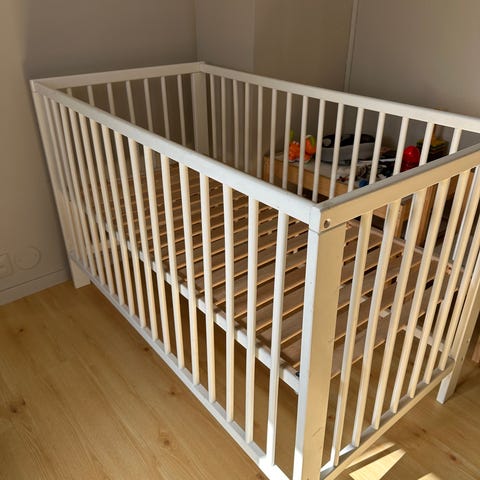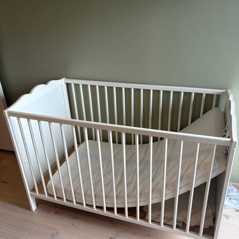 Godt brukt og høyt elsket sprinkelseng. Gis bort da skruene dessverre mangler. Noen synlige bitemerker på kanten. Madrass medfølger.