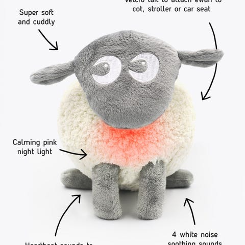 Selger Ewan deluxe sovesau som har 5 forskjellige lyder, nattlys og sensor for barnegråt.