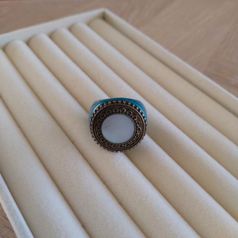 Vakker perfekt ring med stein av ekte jade.