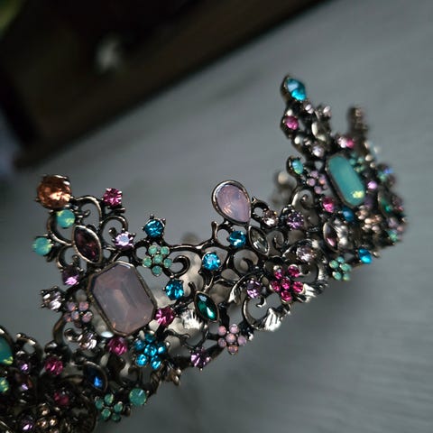 Helt ny krone med krystall deltalje. Perfekt til bryllupdagen eller andre spesiell anledning. Følger med eske og hårfester.