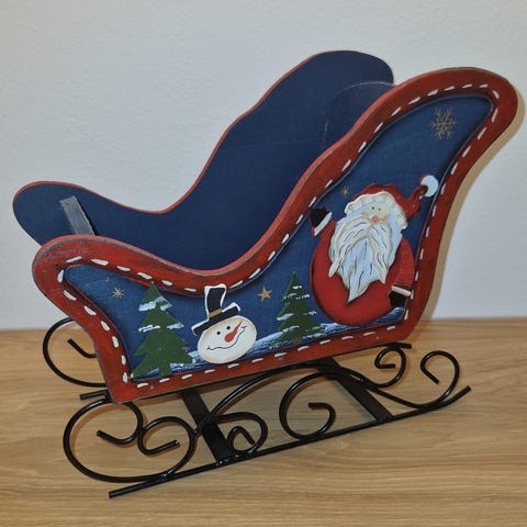 To flotte julesleder i tre og metall.