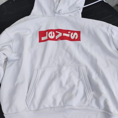 Meget lite brukt Levi's hettegenser i mørkeblå/burgunder. Står str. L, men er som str. M. Unisex modell. Vasket look.