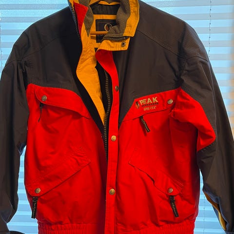 Peak performance jakke i størrelse S, unisex. Jakken er rød og designet for allsidig bruk, egnet for ulike sportstyper og utenriks. Materialet og detaljer er tilpasset for å gi funksjonalitet og komfort.