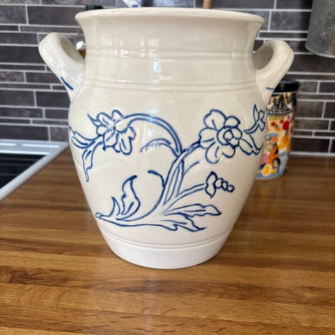 Rörstrandfabrikken i Stockholm startet å produsere krukkene i 1880 og stoppet i 1924.. høyde 21 cmHelt uten skader