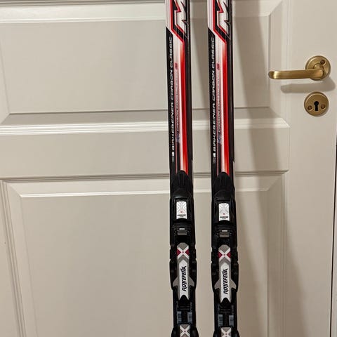 Skiene er fortsatt pakket inn i plast. Stavene er Skigo Racing Pro 50 og er 140 cm lange. Kan muligens leveres mellom Kongsvinger og Oslo ved nærmere avtale.