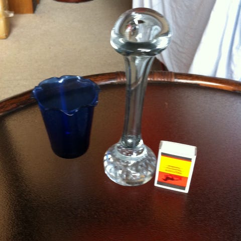 Nr.1 smal sylindrisk vase 185 gram, 20 cm høy og 6 cm diameter. 150kr