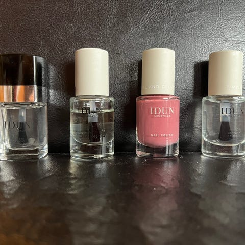7 gel neglelakk fra "gel it", og base coat og top coat. Jeg har ikke fått dette bra til hjemme, selges derfor videre til noen som kan få bedre nytte av dette.