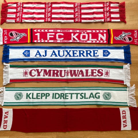 Selger 5 supporterskjerf fra forskjellige klubber.