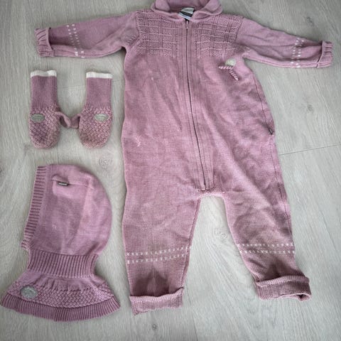 Nydelig lilla ullsett med dress og lue fra Joha. Svært pent brukt og mye bruk igjen. Vi elsket å ha på dette i vogna eller under dressen for et ekstra lag med varme.