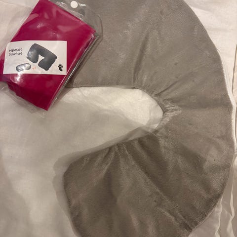 Deilig reisesett i bomull med et teppe/sjal/skjerf og øye maske fra The White Company London. Kommer i pen bag med håndtak tilpasset koffert. Bagen med innhold kan også brukes som en liten pute på reisen.