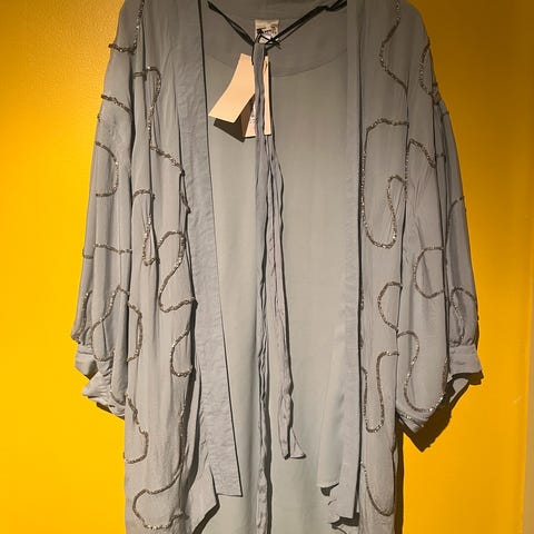 Kimono / jakke fra Selected Femme med sølvpaljetter. Str 38 / M. Nesten ikke brukt.