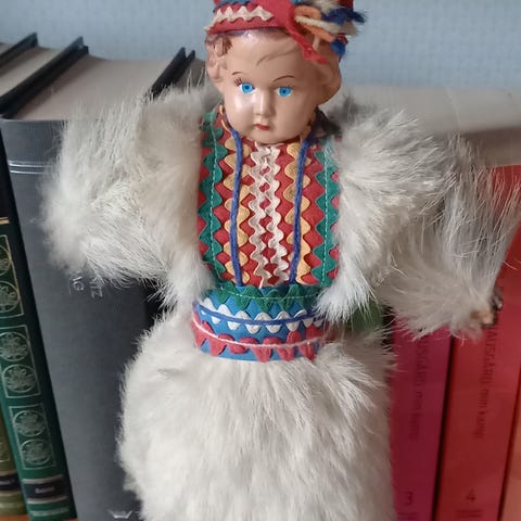 Dukke-klærne er fra 70 tallet og ønsker seg en ny omgang med lek eller en dukke å være på. Består av hettejakke og sæle-bukse.