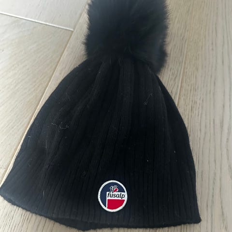 Ubrukt lue med dusk, one size. Nydelig blåfarge.