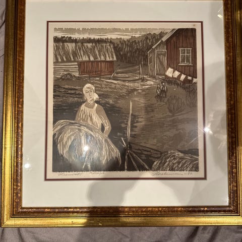 Se bilde. Størrelse inkl ramme: 53x68 cm. Uten ramme 32x43 cm