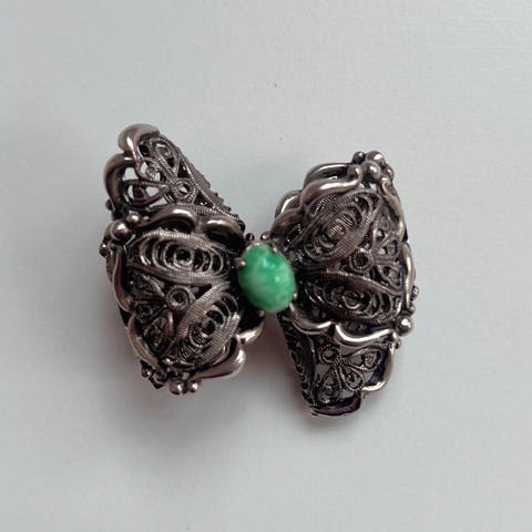 Vakre små stener som glinser og som hever brosjen. Den er veldig pen på kjole, bluse eller genser