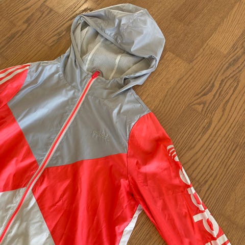 Flott adidas Supernova Climalite løpejakke med hette og full glidelås har en liten glidelåslomme på baksiden. Jakken fremstår som ny.