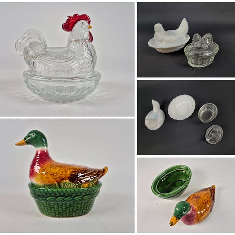 Antikk figur / eggeholder Figur av 6 munker med plass for 6 stk egg