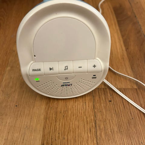 Babycall som fungerer godt og gjør nytten sin. Liten del lades opp med ledning. Den store går på 4x AA batterier.