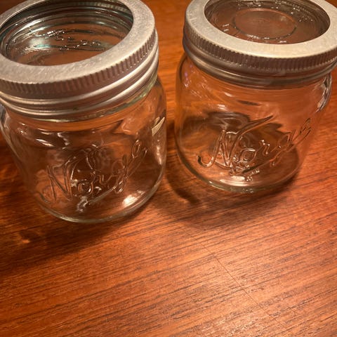 Høyde: 10 cm og diameter utvendig bunn: 8,5 cm. Ikke gummiring i lokket.