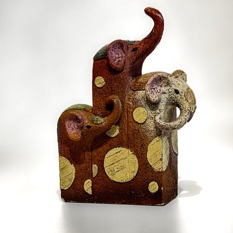 Dekorasjonsfigur elefant utskåret i treverk. Kjøpt på Kremmerhuset.