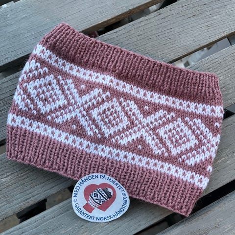 Luen er tykk, strikket med dobbelt lag fra det gule båndet og ned.