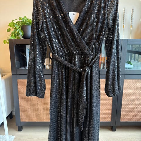 En vakker kjole - festkjole- str M - fra FLOYD- feminin fasong , snitt - fremhever former - lett chiffong med glitter i stoffet - underkjole fastsydd-
