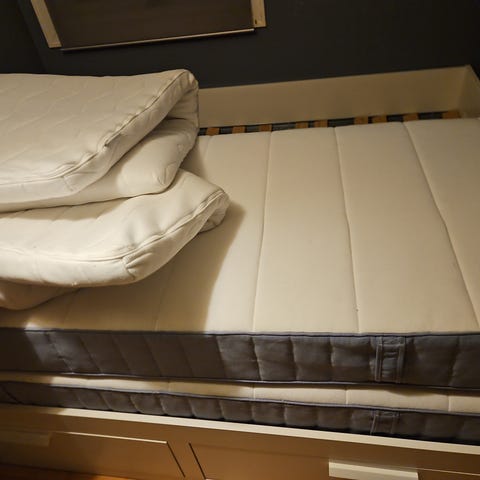 Veldig praktisk seng med god oppbevaring og mulighet for å trekke ut til dobbeltseng (160)
