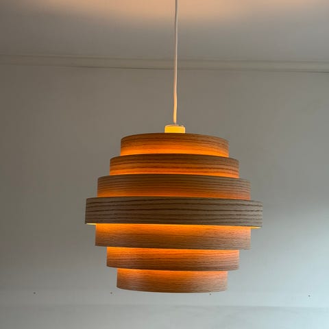 Spesielle lamper. Unik design, emaljert stål orange og blå, med separate lys deksler som gjør at lys blir indirekte med skjult lyskilde. Fra Verner Pantons Flowerpot serie som kom ut 1968 og utover. Disse antas å være fra 70 tallet.
