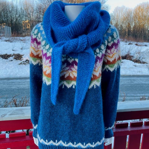 Mørkegrønt Sophie Shawl i nydelig økologisk Kashmir. Strikket etter oppskrift fra Petite Knit. Dette er den minste varianten av sjalet.