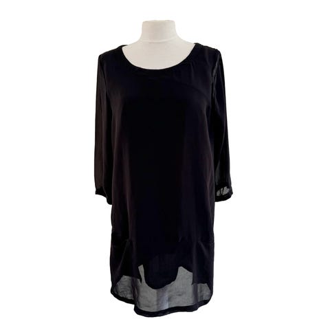 Kjolen er pent brukt. Str. XL, men litt liten i størrelsen. Brystmål fra armhule til armhule er 52 cm og hel lengde fra skulder og ned er 91 cm. Kjolen er i to typer stoff. Stoffene er i 50% bomull, 45% polyester og 5% elastan samt 70% viskose, 25% polyester og 5% elastan.