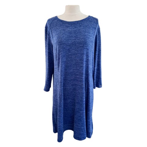 Pen, marineblå kjole fra Free/quent. Kjolen er enkel i snittet med pent mønster i stoffet. 3/4 lange ermer og noe stretch. Rund hals og god stretch. Kjolen leveres skånsomt vasket og klar til bruk.
