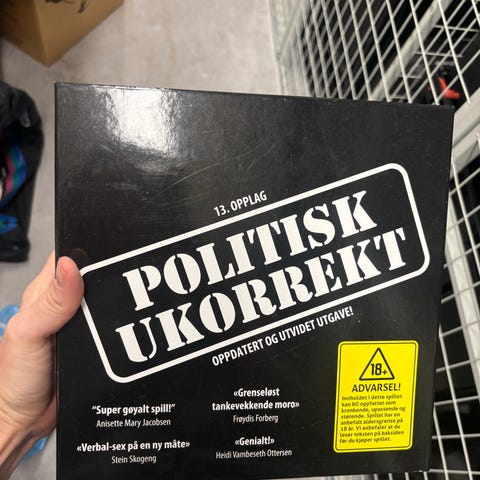 Selger ‘Politisk ukorrekt’. Spillet har aldri vært brukt, og har fremdeles plasten på.