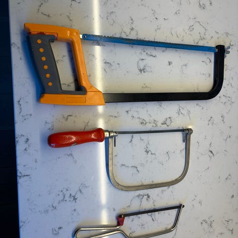 To stykk sager. Den ene er helt vanlig sagt. Den andre sagen er til å sage " Finger sjøter "