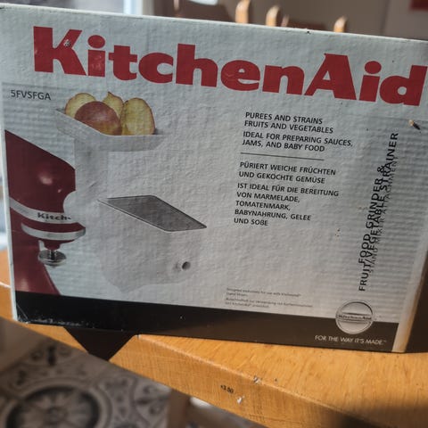 Tilleggsutstyr til Kitchen Aid. Kan kverne frukt, grønnsaker osv.