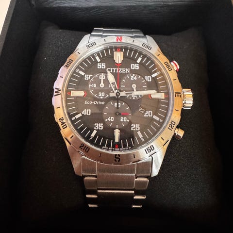 Klokken har safirglass og 10 atm.