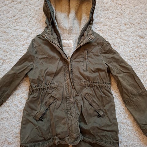 Fin jakke/kåpe i militær grønn, fór inni str 122-128 150kr