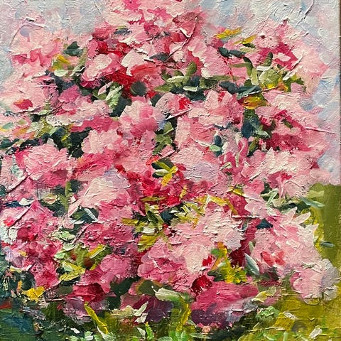Stort flott olje/akrylmaleri på lerret. Oppspent på ramme.