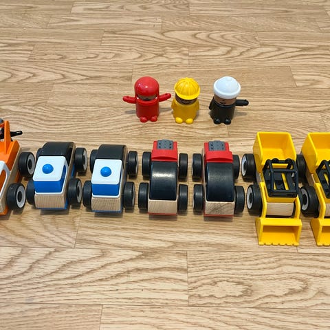Selger lekebiler fra Ikea, LILLABO. Lekt veldig lite med, som nye. Mulig å lage mange kombinasjoner.