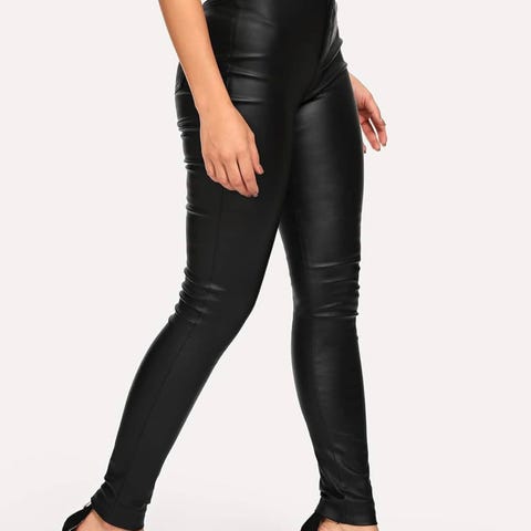 Holland Cooper Skinny Leather Look-bukser i “black” har en skinnende overflate og metalliske gullglidelåser på frontlommene, samt en trippel knappelukking. Kombiner disse skinninspirerte buksene med en hvit bluse og høye hæler for et enkelt, men elegant uttrykk.