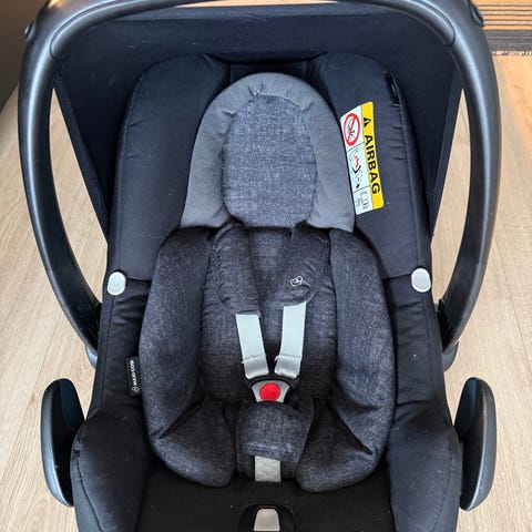 Praktisk med et bassinet du kan klikke rett fra vogna og inn i bilen. Må ha maxi cosi vogn, vår er i utgangspunktet ikke til salgs da storesøster bruker sittedel.
