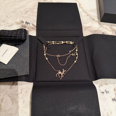Langt kjede laget av stenen lapis lazuli. Har mange positive effekter. :)